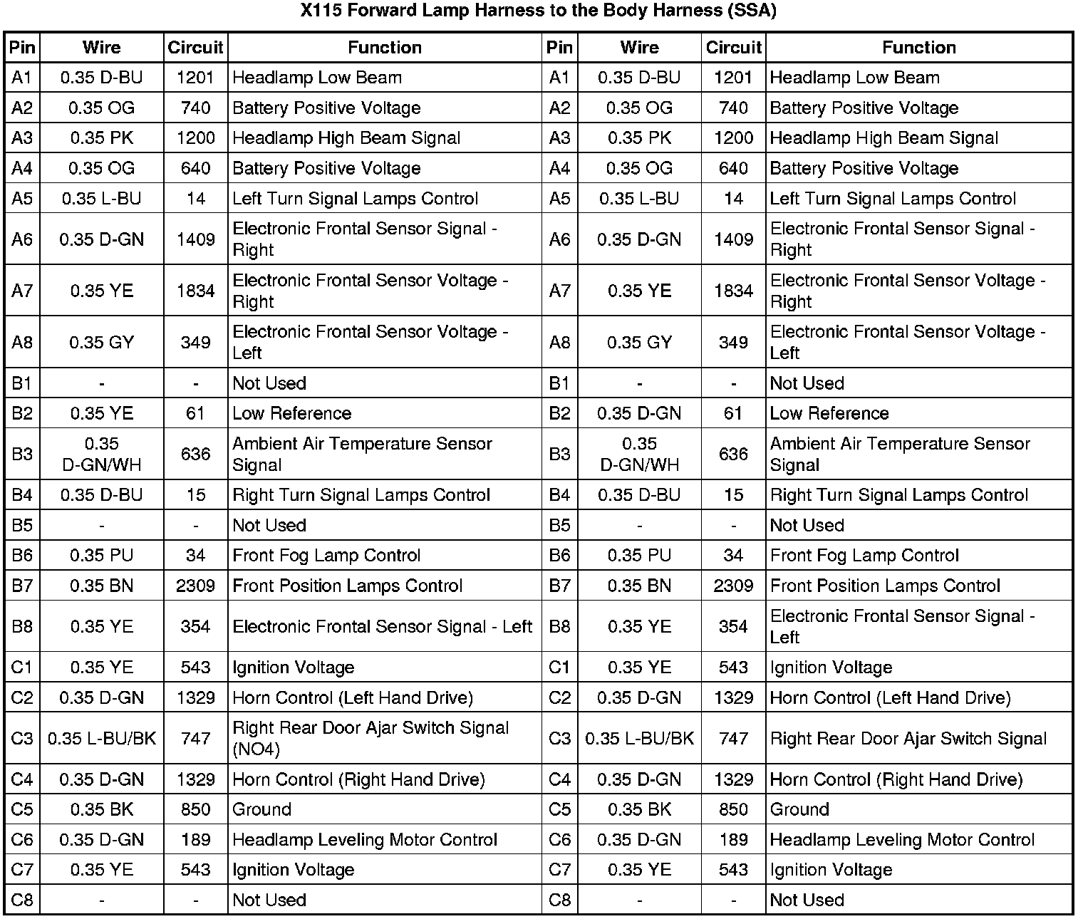 X115 Forward Lamp Harness to the Body Harness (SSA)