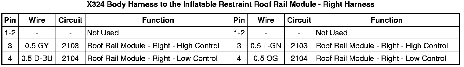 X324 Body Harness to the Inflatable Restraint Roof Rail Module - Right Harness