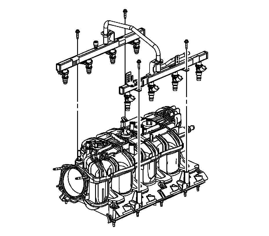 Note: Lift evenly on both sides of the fuel rail until all injectors are removed from their bores.