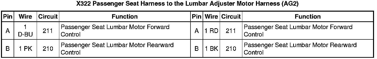 X322 Passenger Seat Harness to the Lumbar Adjuster Motor Harness (AG2)