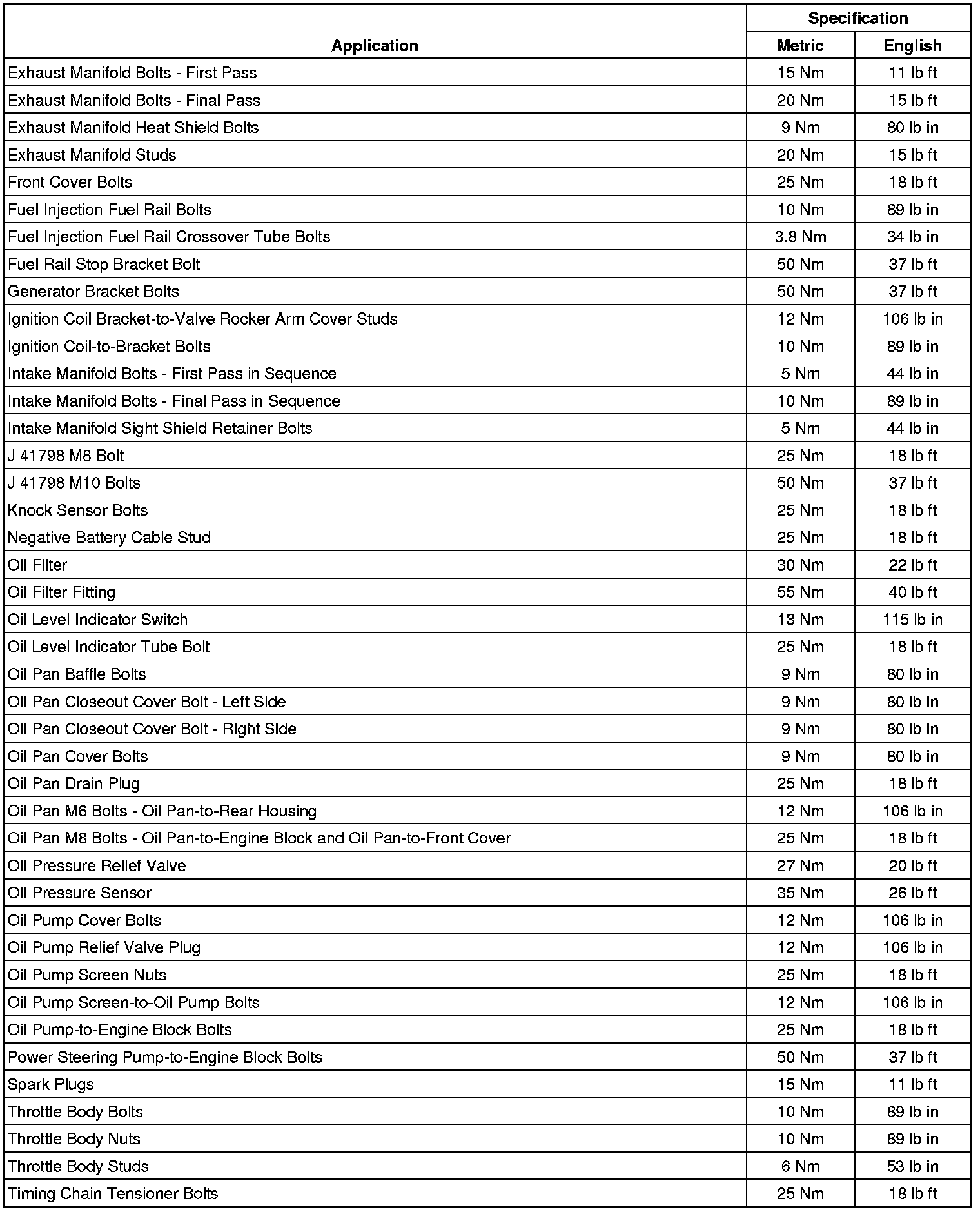 Fastener Tightening Specifications