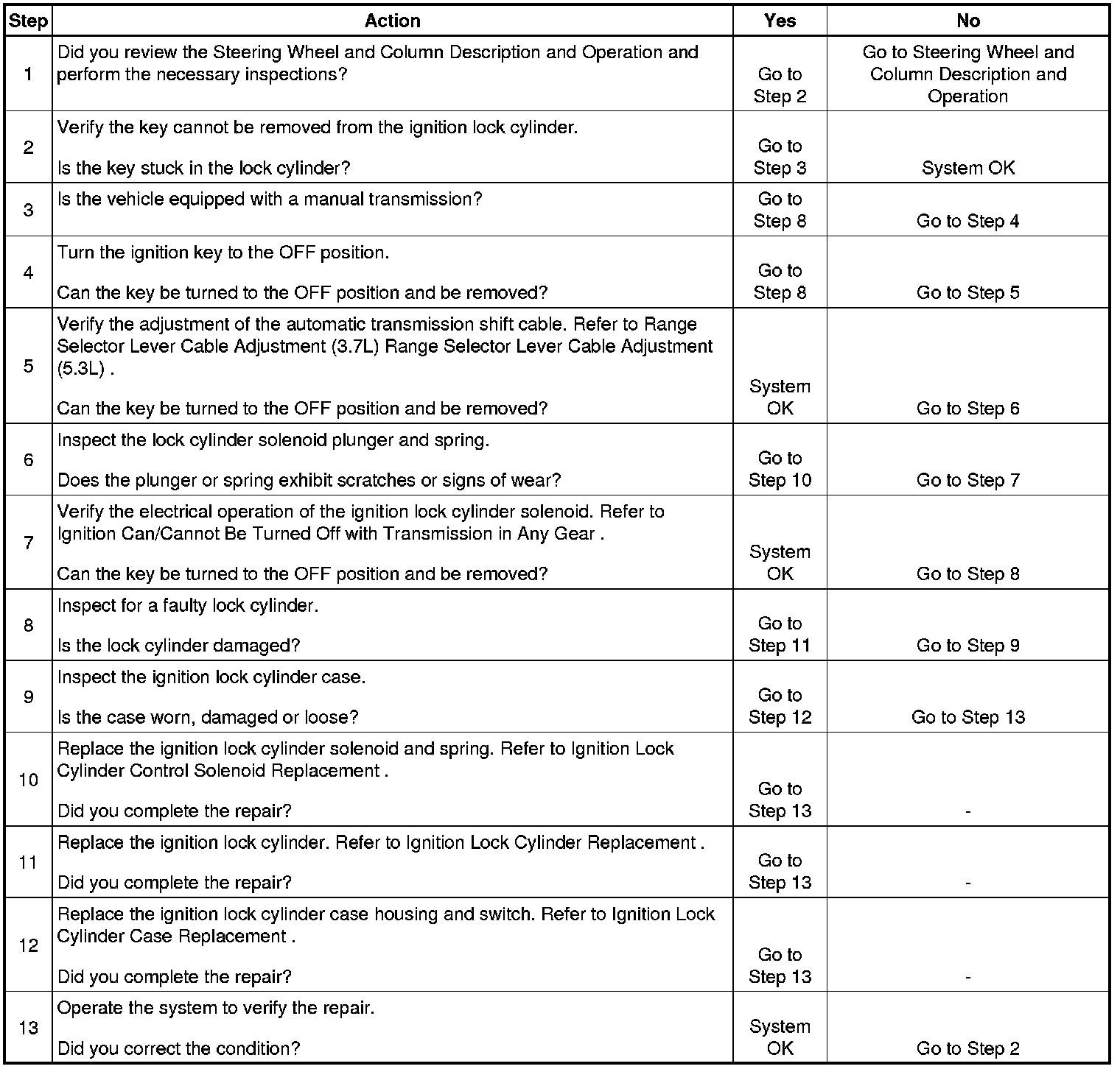 Ignition Key Cannot Be Removed from the Ignition Lock Cylinder