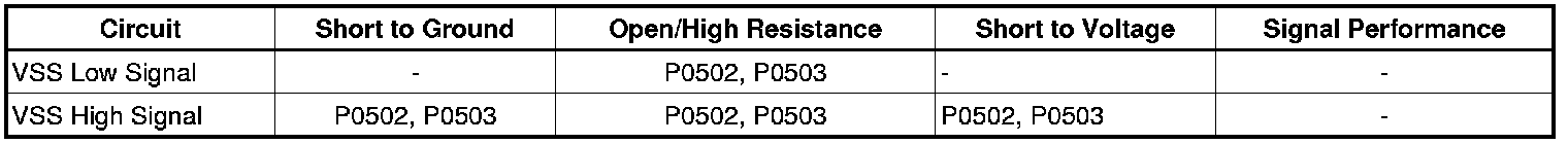 - Vehicle Speed Sensor (VSS) Circuit Low Voltage
