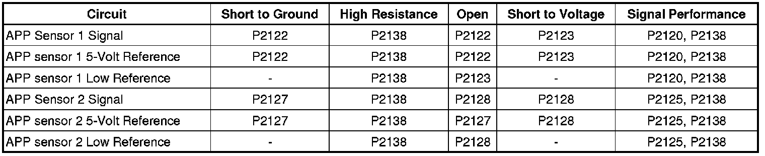 - Accelerator Pedal Position (APP) Sensor 1 Circuit High Voltage