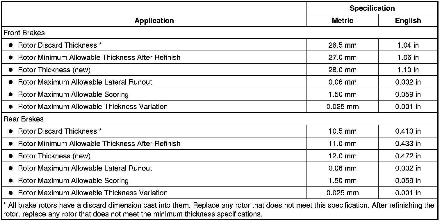 Disc Brake Component Specifications