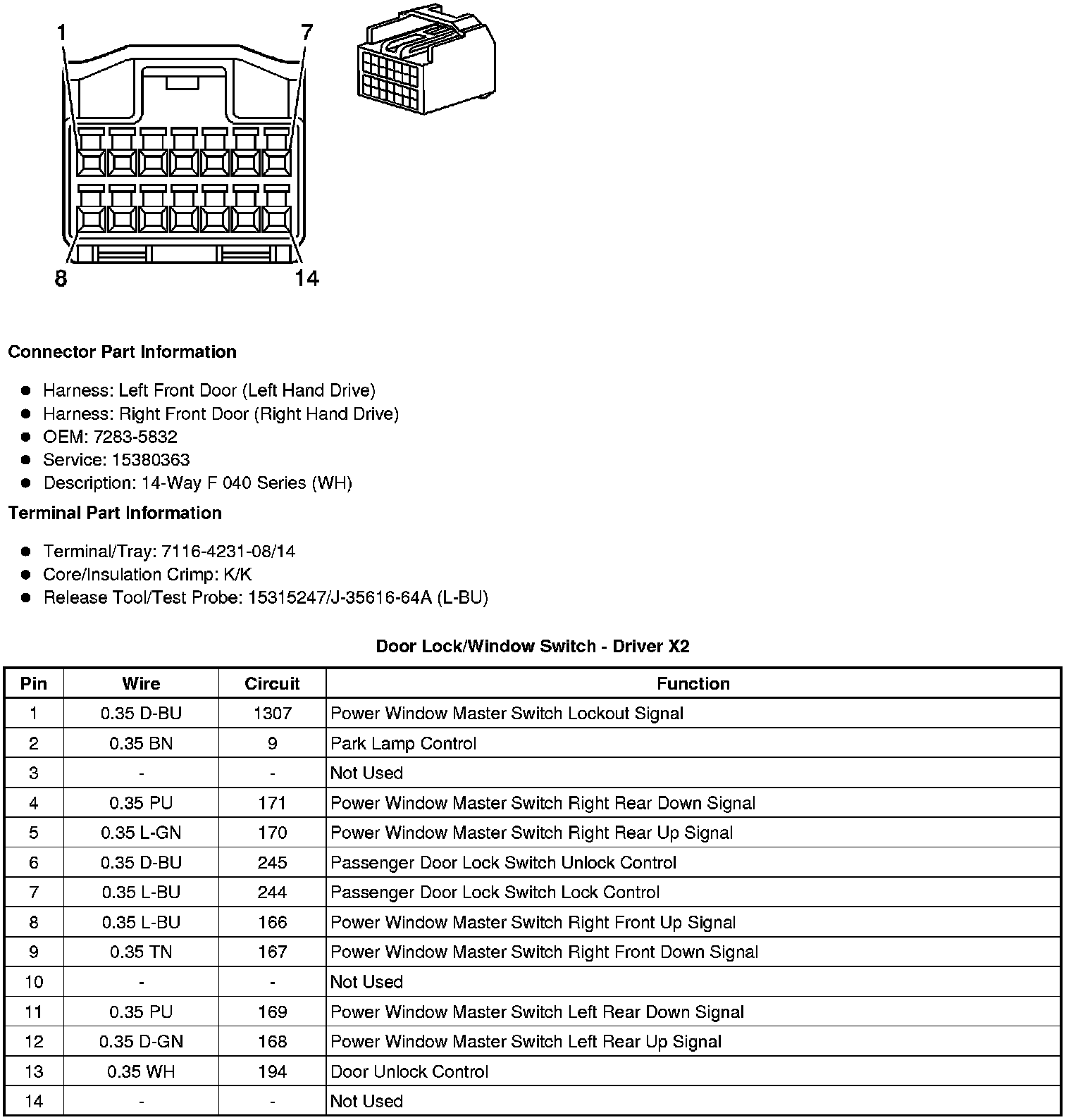 Door Lock/Window Switch - Driver X2