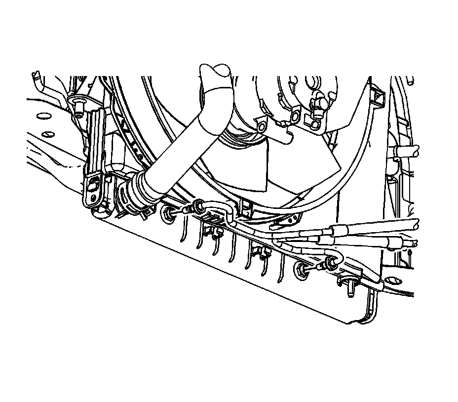 6. Remove the transmission cooler lines from the radiator. Refer to Transmission Fluid Cooler Hose/Pipe Quick-Connect Fitting Disconnection and Connection (Transmission Fluid Cooler Hose/Pipe Quick-Connect Fitting Disconnection and Connection) for the 4L60-E/4L65-E transmission, if equipped.