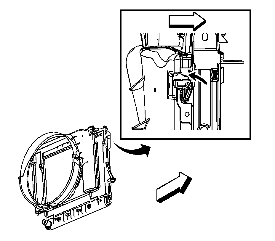 15. Connect the transmission cooler lines to the radiator. Refer to Transmission Fluid Cooler Hose/Pipe Quick-Connect Fitting Disconnection and Connection (Transmission Fluid Cooler Hose/Pipe Quick-Connect Fitting Disconnection and Connection) for the 4L60-E/4L65-E transmission, if equipped.