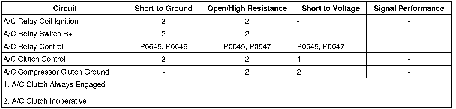• If the test lamp does not illuminate, test the B+ circuit for an open/high resistance. If the A/C fuse is open, test the relay switch control circuit for a short to ground. If all circuits test normal, test or replace the A/C compressor clutch.