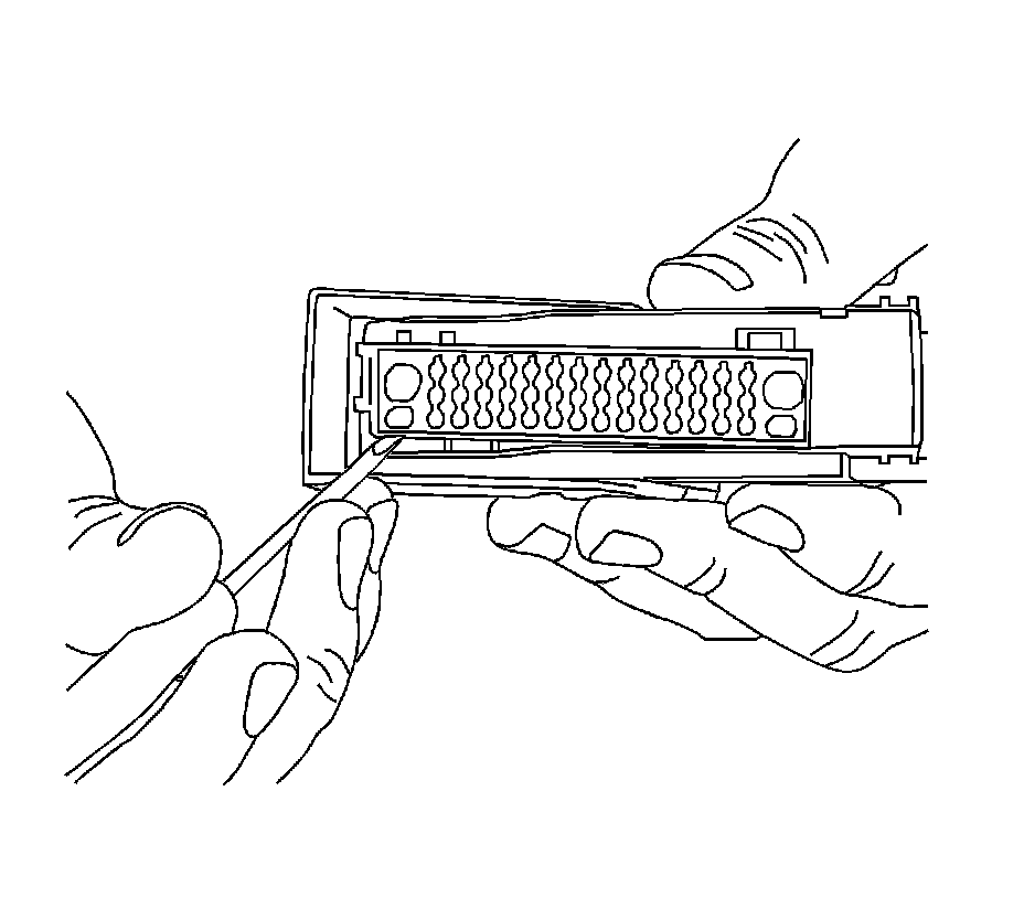 For the larger terminals insert the J 38125-556 tool to release the terminals by inserting the tool into the terminal release cavity. For the smaller terminals insert the J 38125-560 tool to release the terminals by inserting the tool into the terminal release cavity. See the release tool cross reference in the Reference Guide of the J-38125 to ensure that the correct release tool is used.