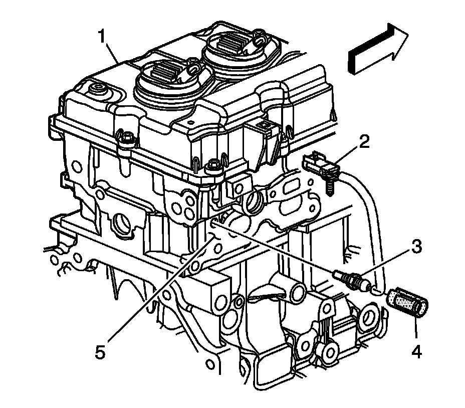 3. Using the J 45861 (4) carefully remove the ECT sensor (3) from the cylinder head (5).