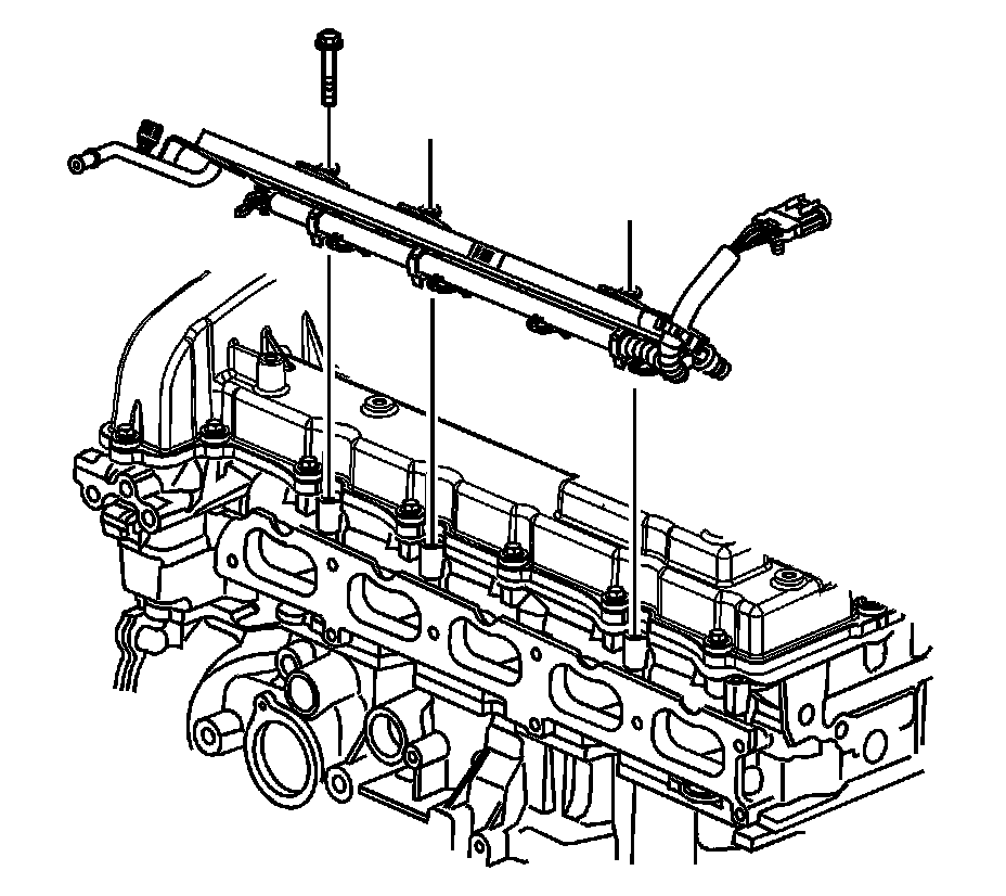 The fuel rail assembly attaches to the cylinder head. The fuel rail assembly performs the following functions: