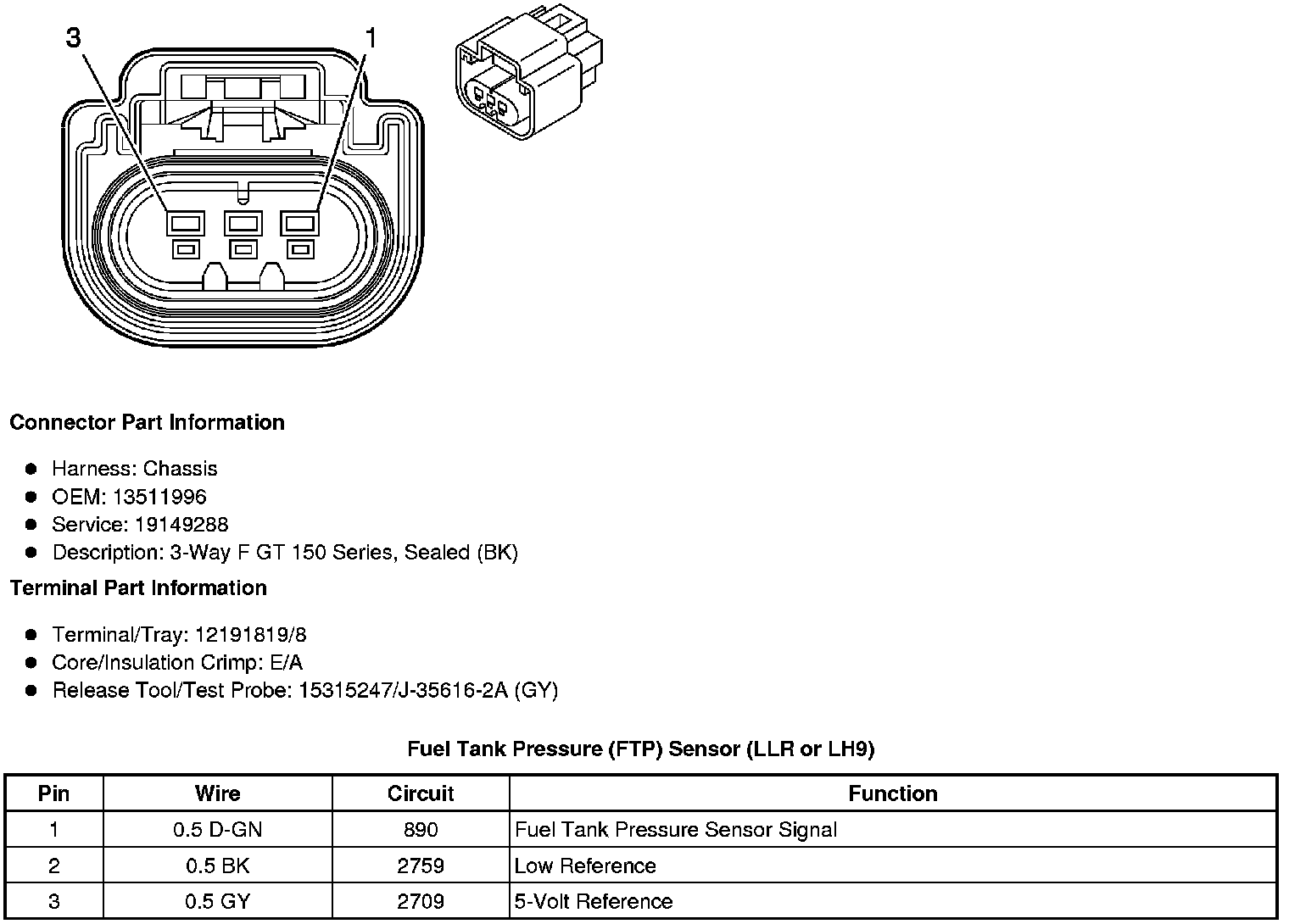 Fuel Tank Pressure (FTP) Sensor (LLR or LH9)