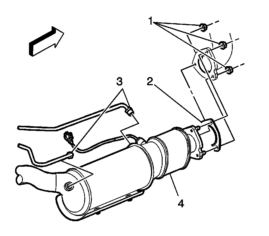 6. Remove the diesel particulate filter (DPF) pressure pipes (3).