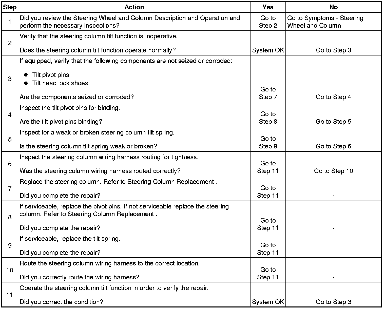 Steering Column Tilt Function Inoperative
