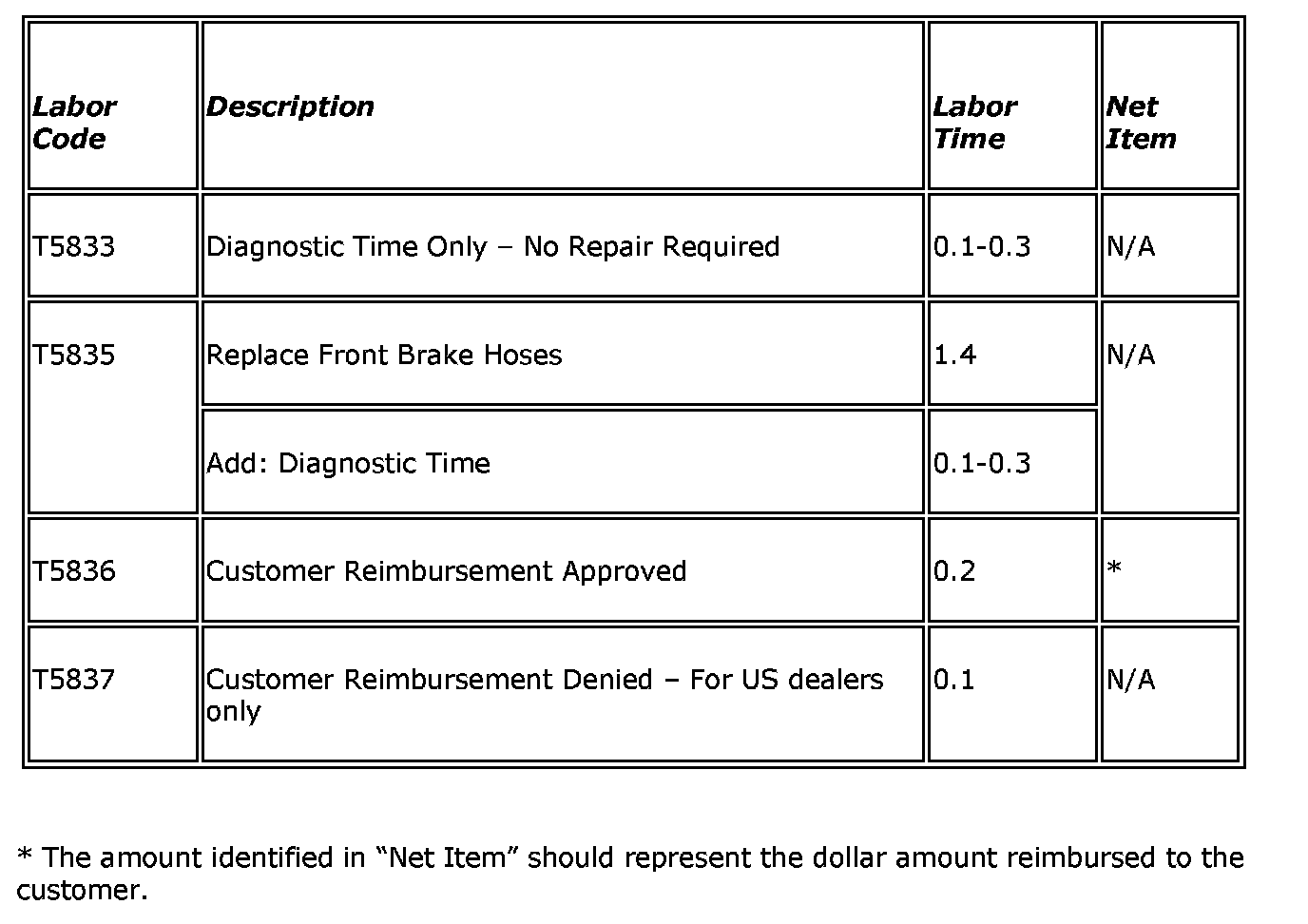 ^ If the front brake hose does NOT require replacement, no further action is required. Inform the customer that any additional diagnosis and repairs are not covered under this special coverage.
