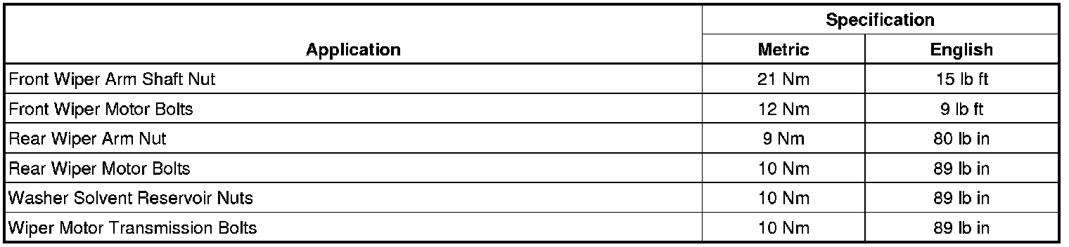Wiper and Washer Systems: Specifications