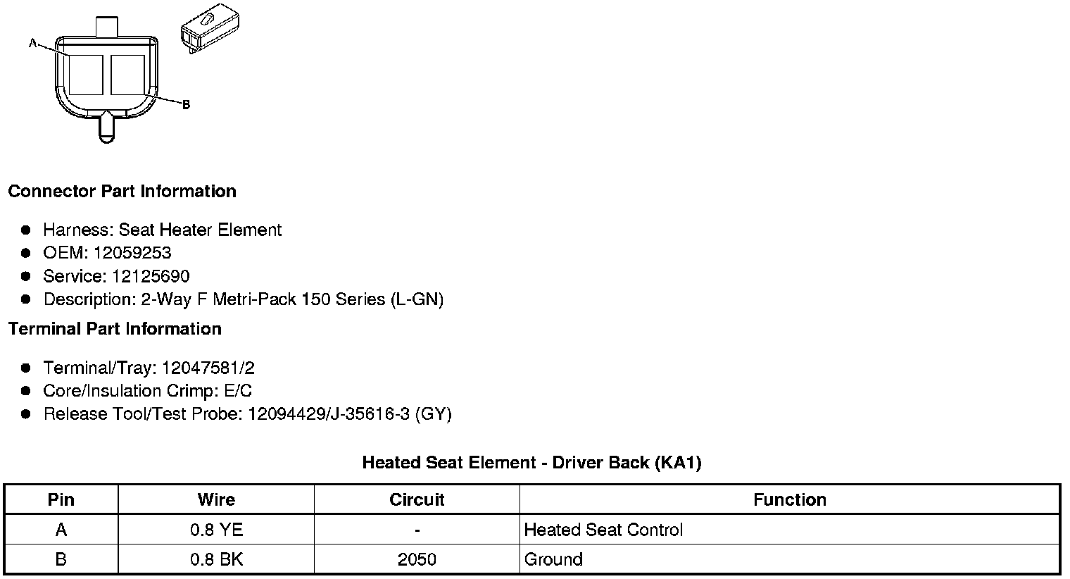 Heated Seat Element - Driver Back (KA1)