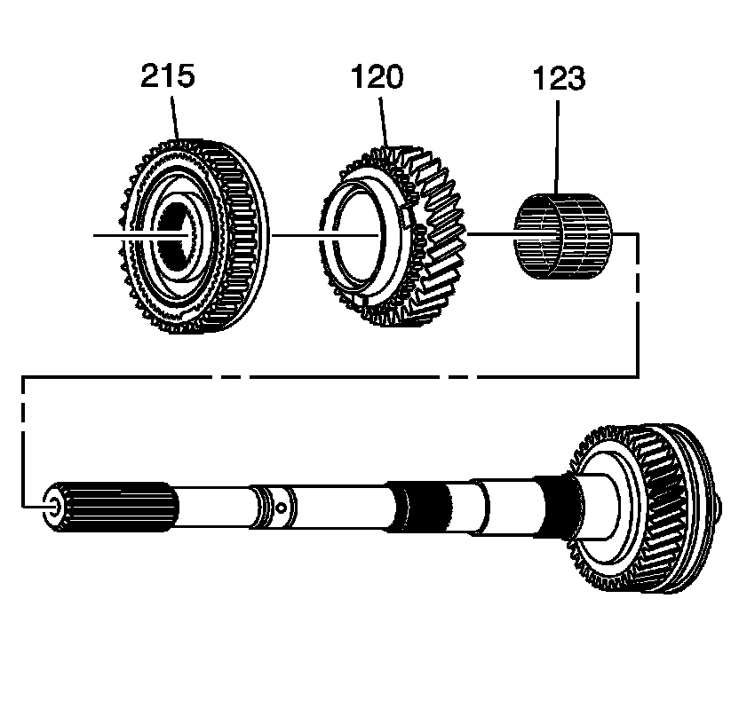 13. Install the 2nd gear bearing (123) and the 2nd gear (120) on the rear of the output shaft.