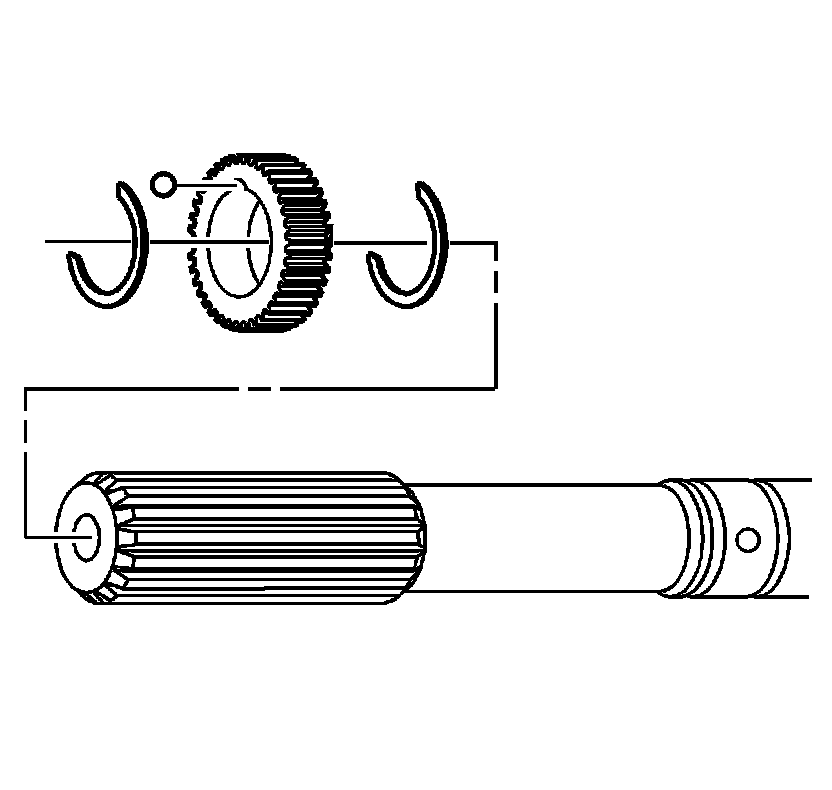 11. Select the maximum thickness retaining ring for the 3rd/4th synchronizer hub, that will fit in the groove. Refer to 3rd and 4th Gear Synchronizer Retaining Ring Specifications (3rd and 4th Gear Synchronizer Retaining Ring Specifications).
