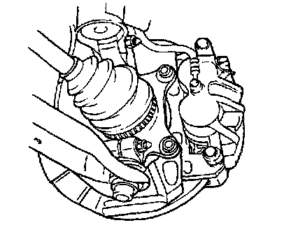 1. Remove the caliper support, then raise the caliper assembly upward and suspend with wire.