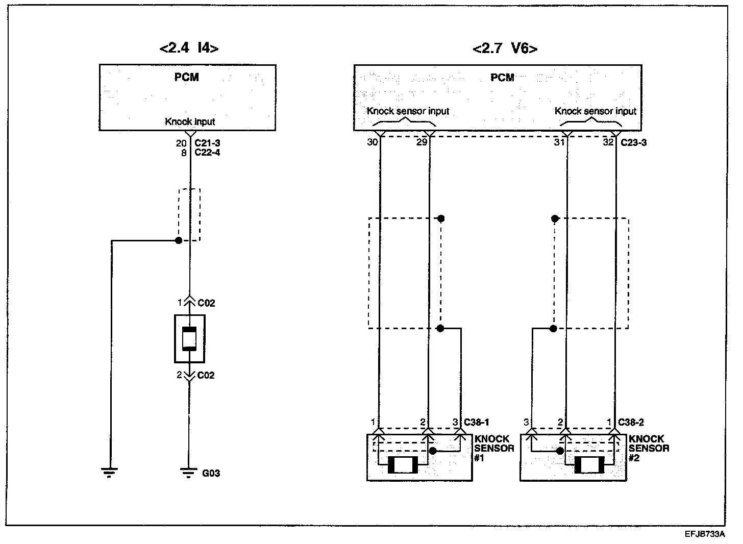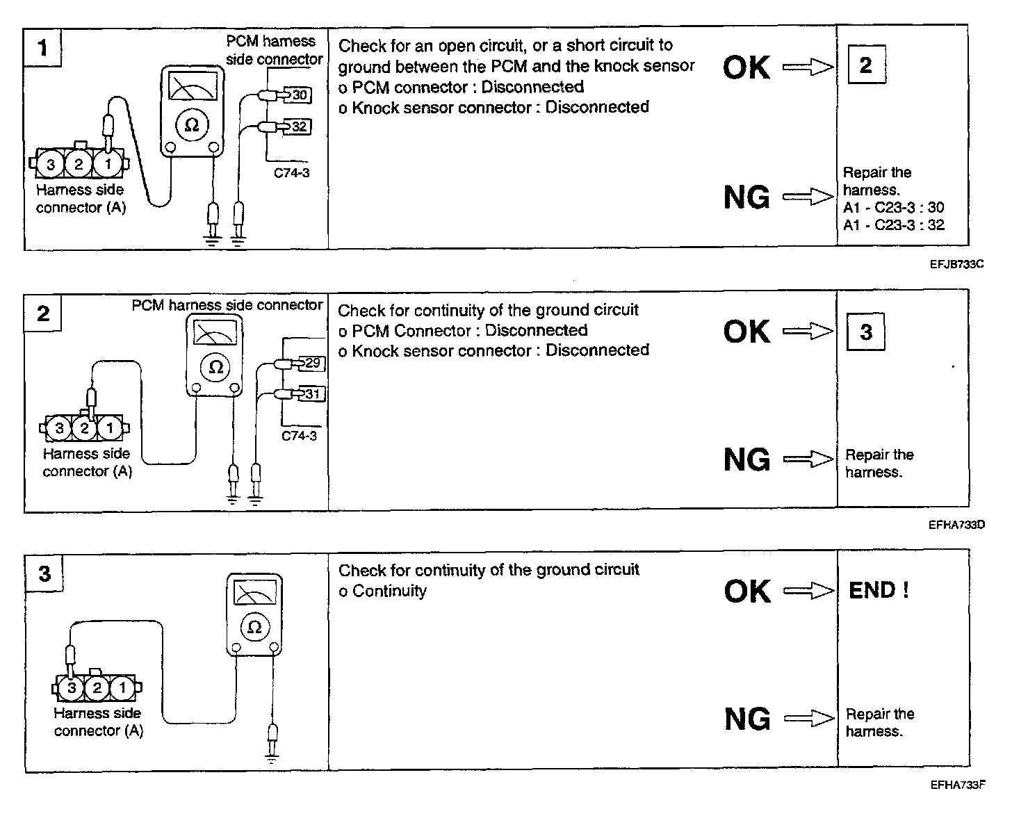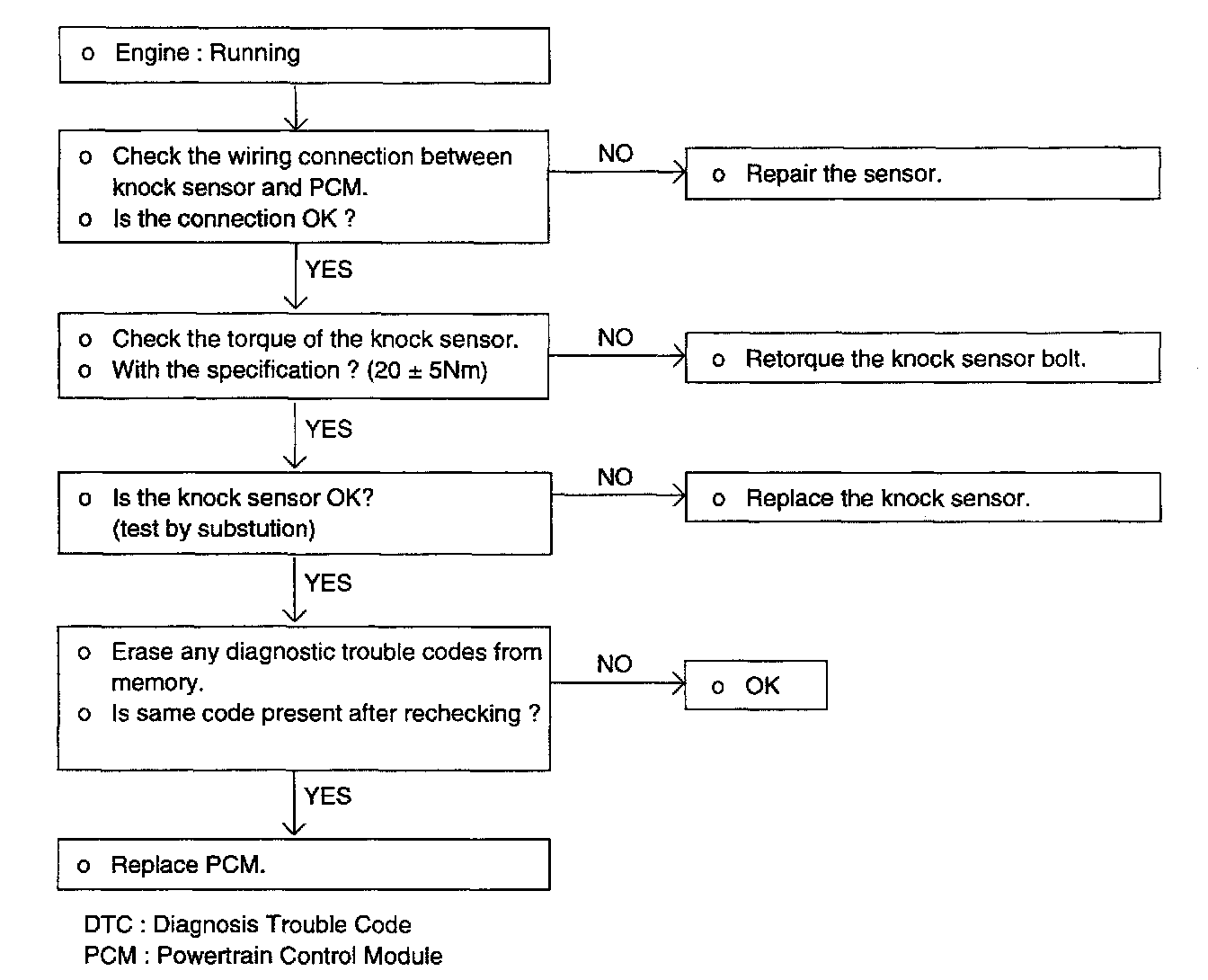 - When the knock sensor signal is not detected, even though the engine is in an overload condition.