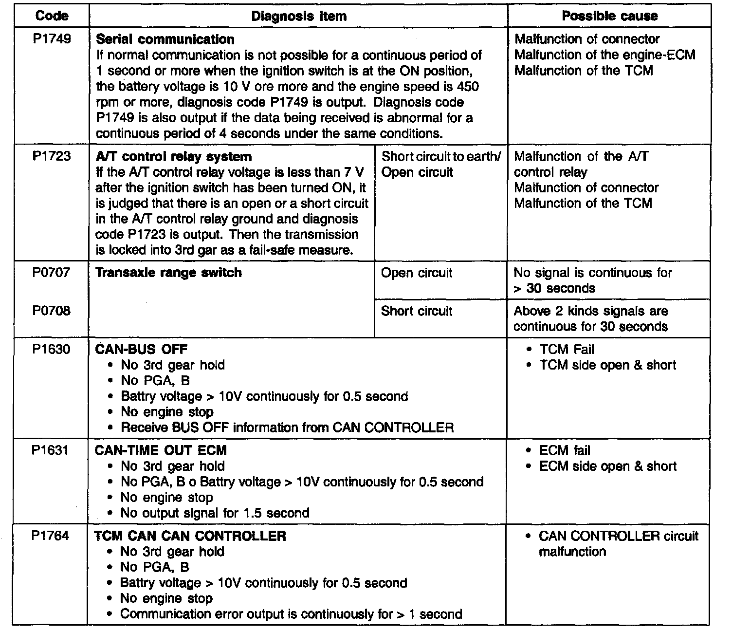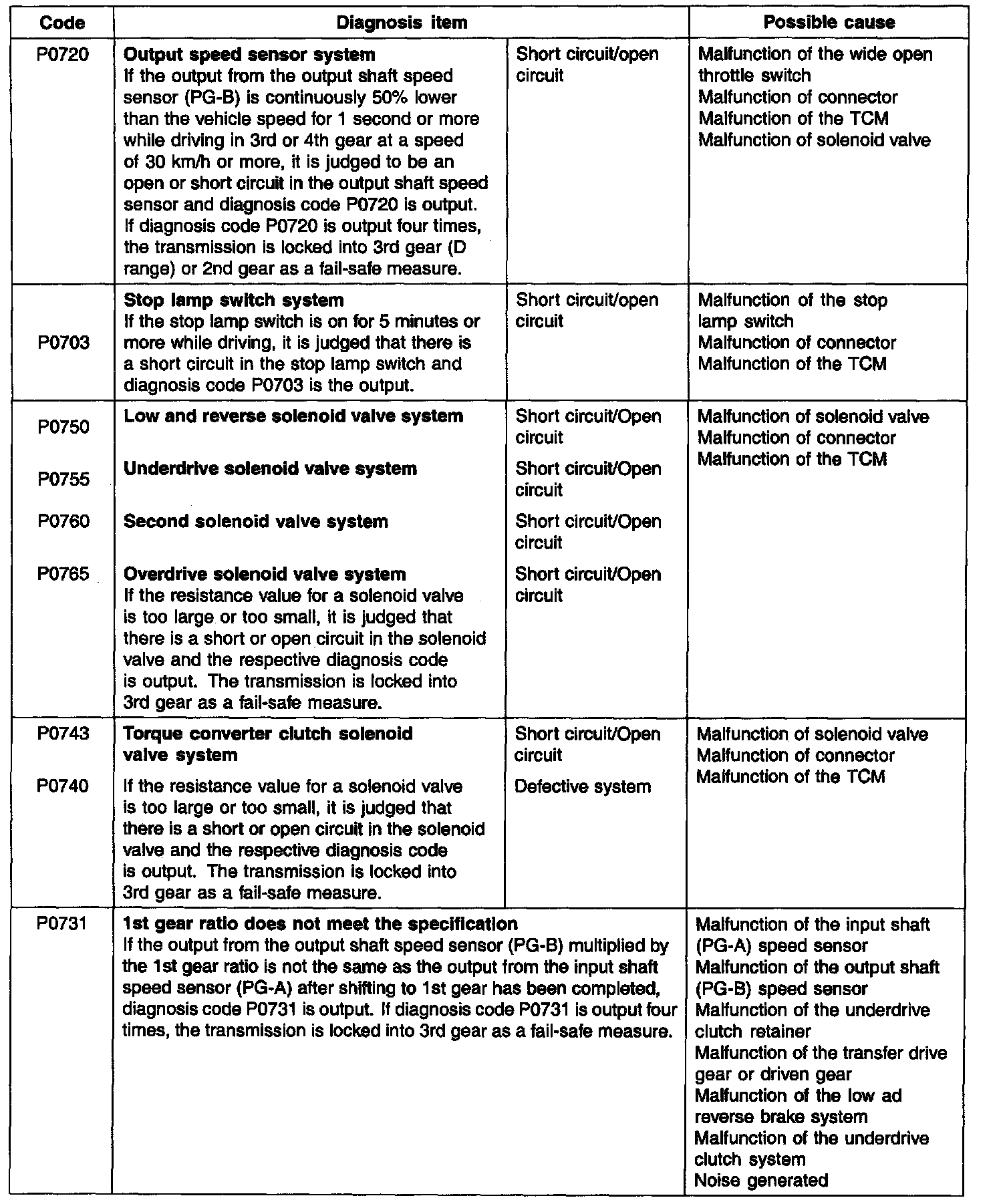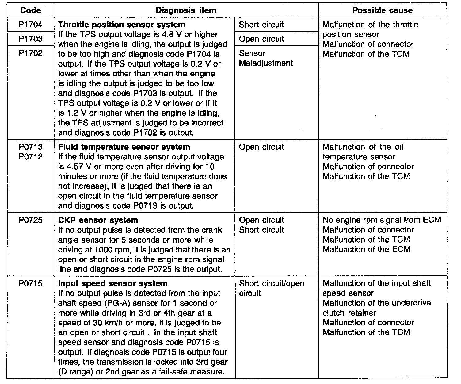 INSPECTION CHART FOR DIAGNOSIS CODES