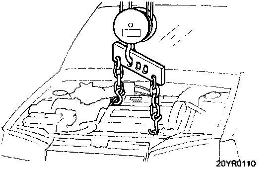 Attach a chain or cable to the engine hooks and lift enough so that there is no pressure on the motor mounts.