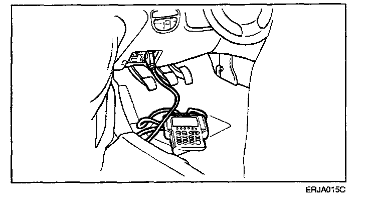 1. Connect the Hi-Scan Pro to the vehicle data link connector located underneath the dash panel.