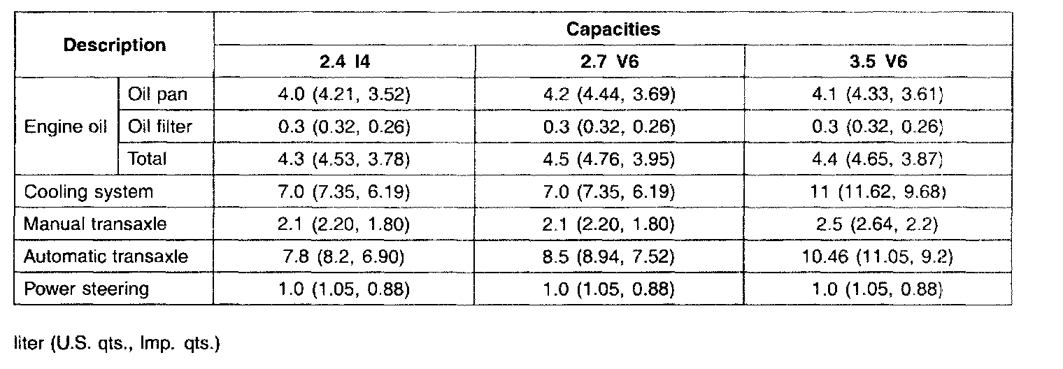 General Capacities Specifications