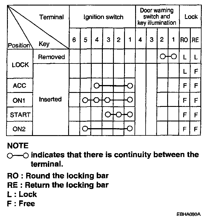 1. Separate the connector located under the steering column.2. Inspect the switch continuity between the terminals.