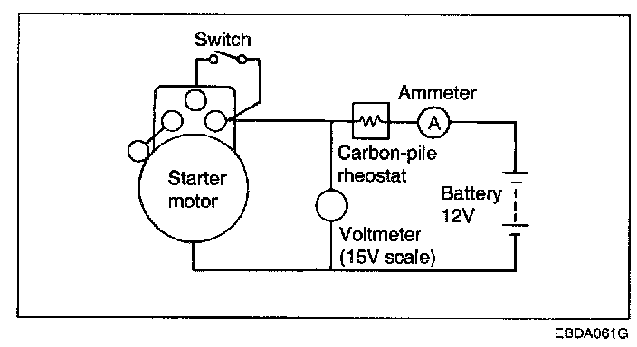 3. Connect a voltmeter (15-volt scale) across starter motor.