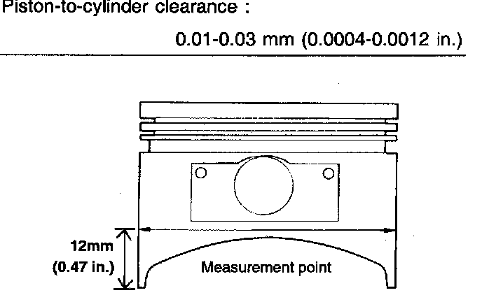Piston -to-cylinder clearance 0.01 - 0.03 mm (0.0004 - 0.0012 inch)