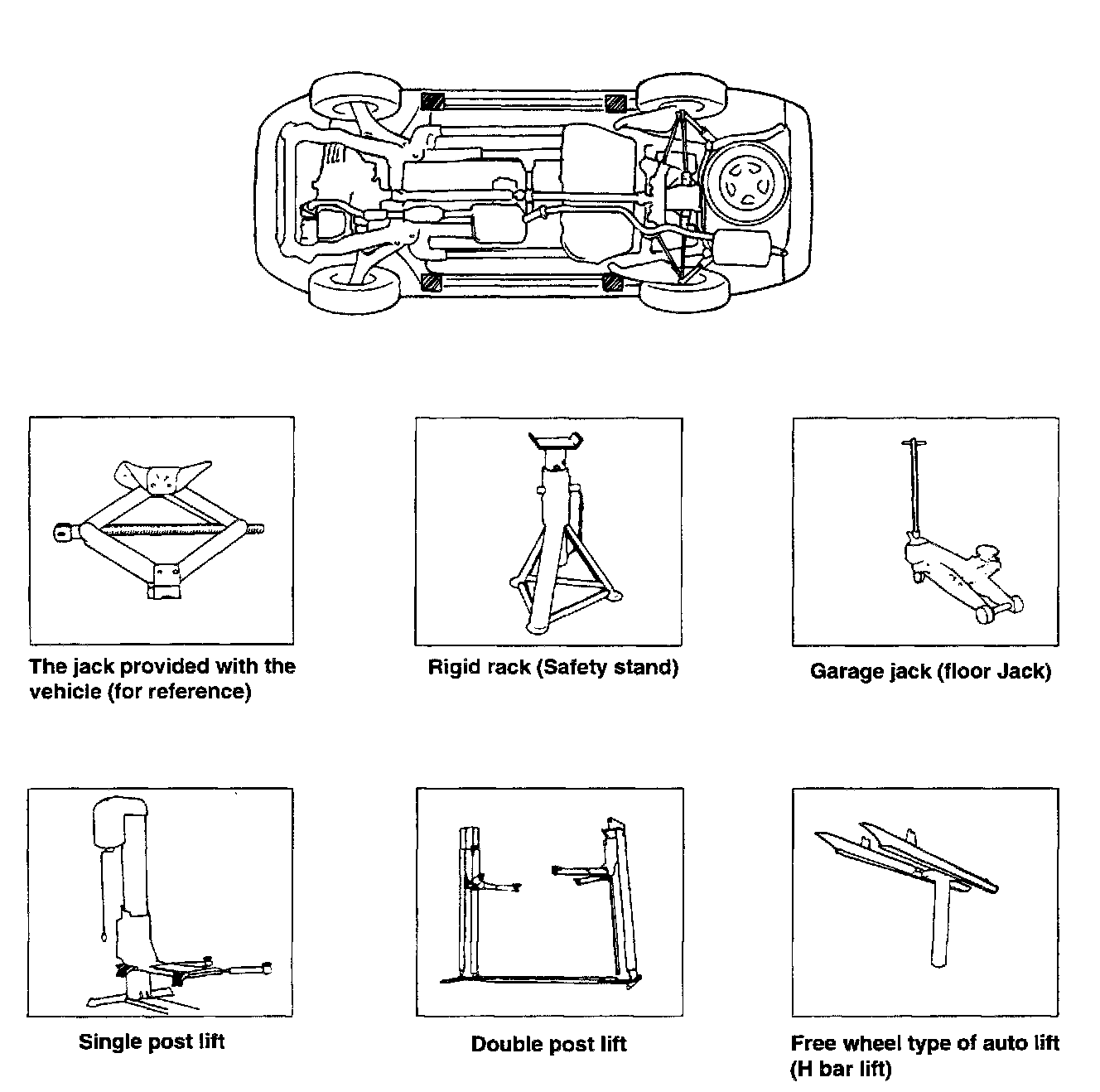 1. Never use a lack beneath the lateral rod or rear suspension assembly.