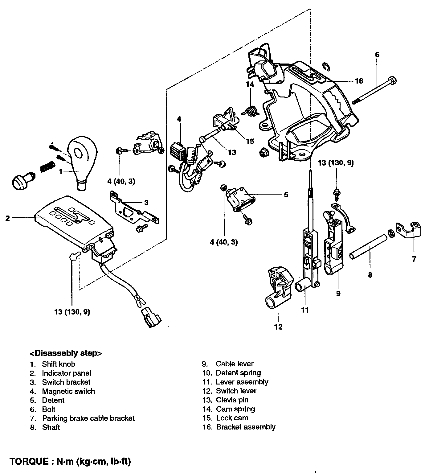 1. When the brake pedal is not depressed, the push button of the shift lever at "P" position must not be operable. (Shift lever cannot be shifted at the other positions from "P")