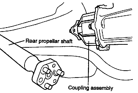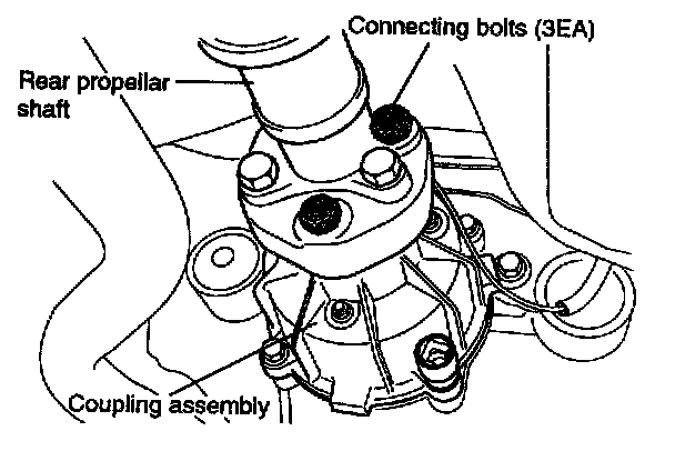 1. Remove the 4WD coupling bolts (SEA) mounted to the rear propeller shaft.