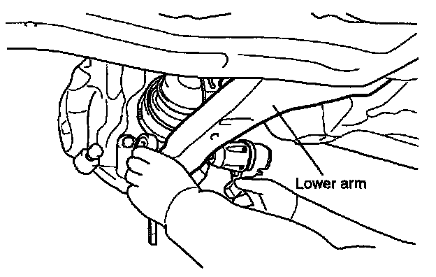 9. Remove the lower arm ball joint mounting bolt.