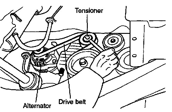 12. Remove the alternator drive belt using the tensioner.