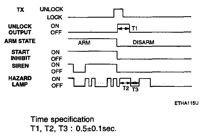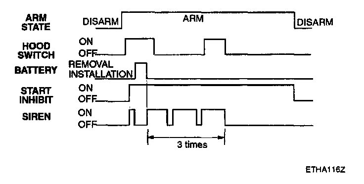 f. Disarmed after 30 sec when the ignition switch is turned on while the alarm is sounding.