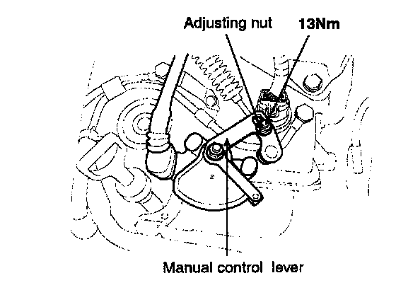 2. Loosen the control cable to the manual control lever coupling nut to free the cable and lever.