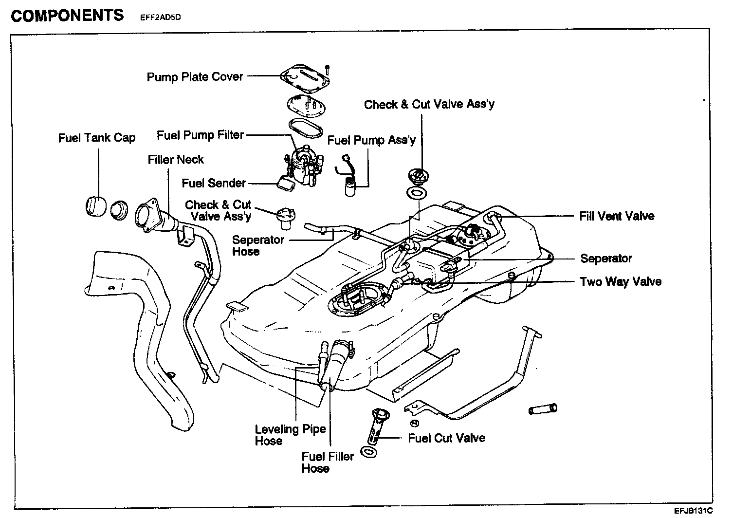 - Reduce the fuel pressure before disconnecting the fuel line and hose, or fuel will spill out.