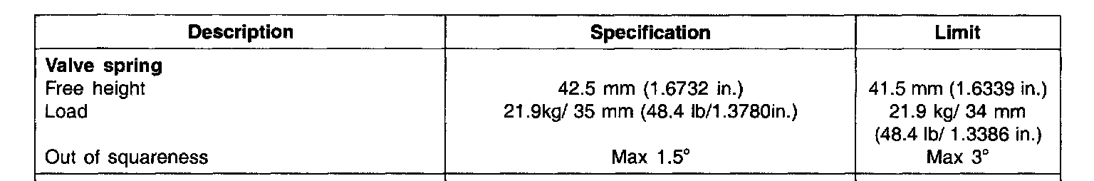 Valve Spring: Specifications