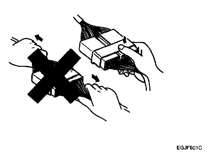 a. Never pull on the wiring harness when disconnecting connectors.