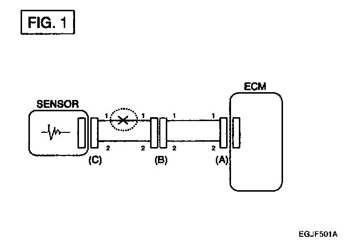 If an open circuit occurs (as seen in [FIG. 1]), it can be found by performing Step 2 (Continuity Check Method) or Step 3 (Voltage Check Method) as shown below.