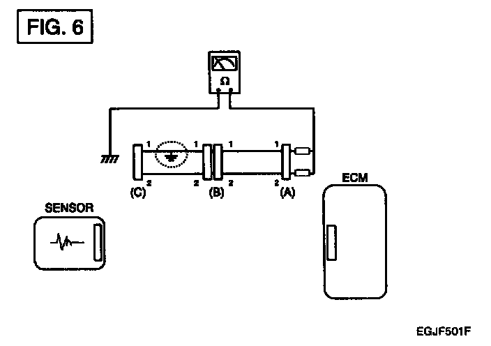 a. Disconnect connectors (A), (C) and measure for resistance between connector (A) and Chassis Ground as shown in [FIG. 6].