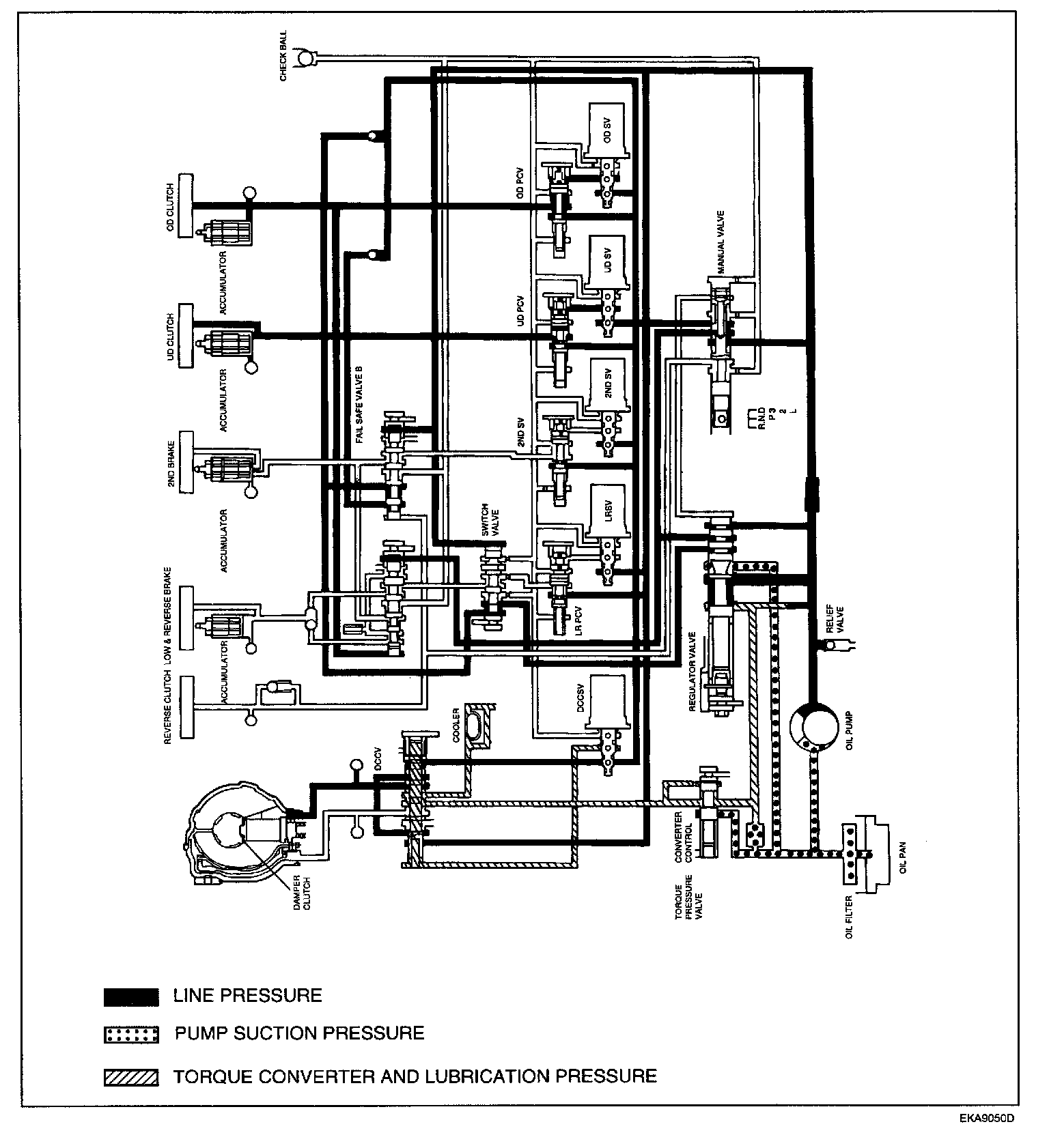 - The line pressure is supplied to the each element (fail-safe valve B, switch valve, DCCV, LR solenoid valve, LR pressure control valve).