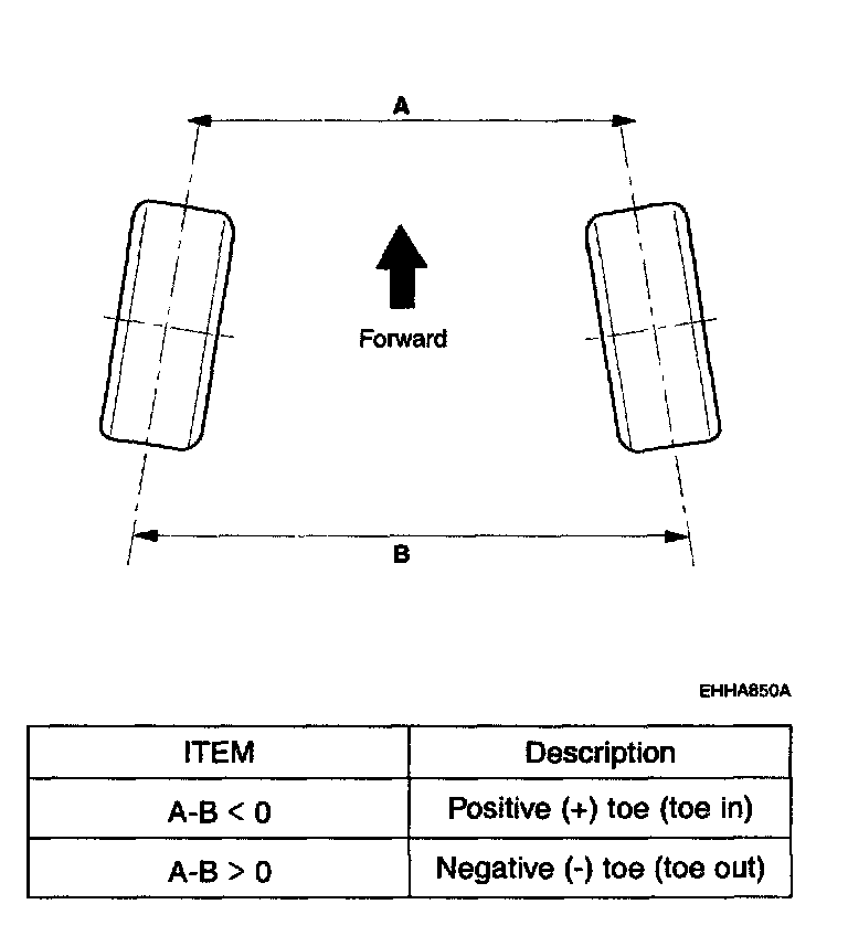 Standard value Toe-in (B-A): 0 ± 2 mm (0 ± 0.08 inch)