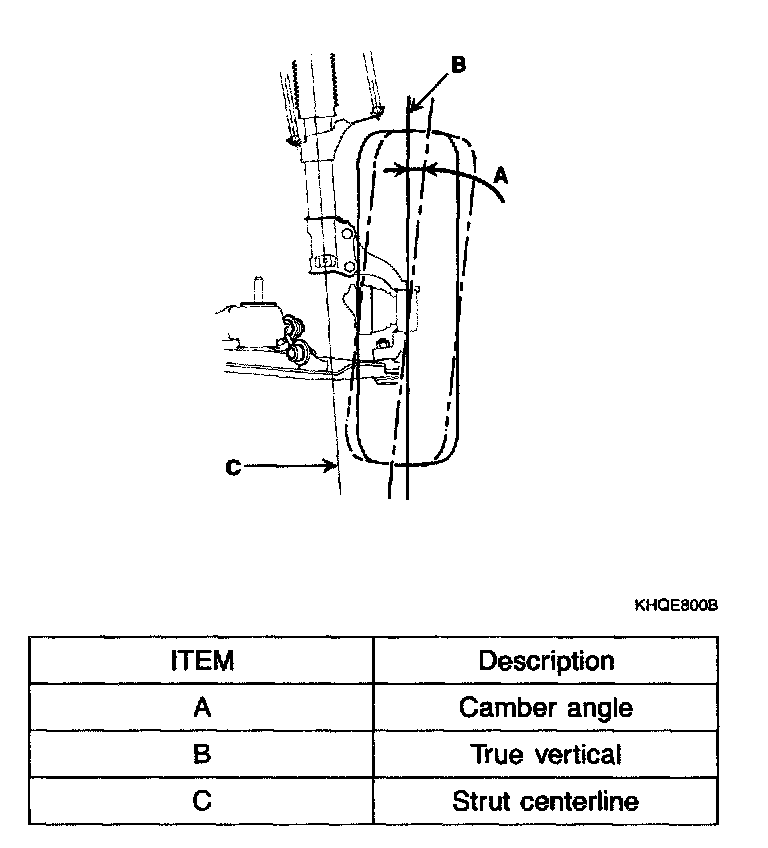 The steering knuckle which is installed with the strut assembly is pre-set to the specified camber at the factory and doesn't need to be adjusted.