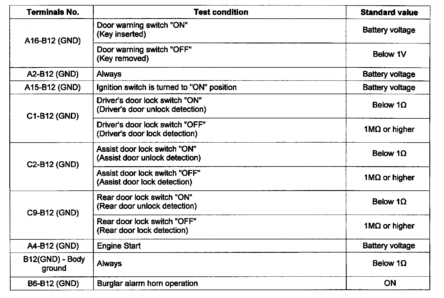 ETACS MODULE INPUT SIGNAL TEST