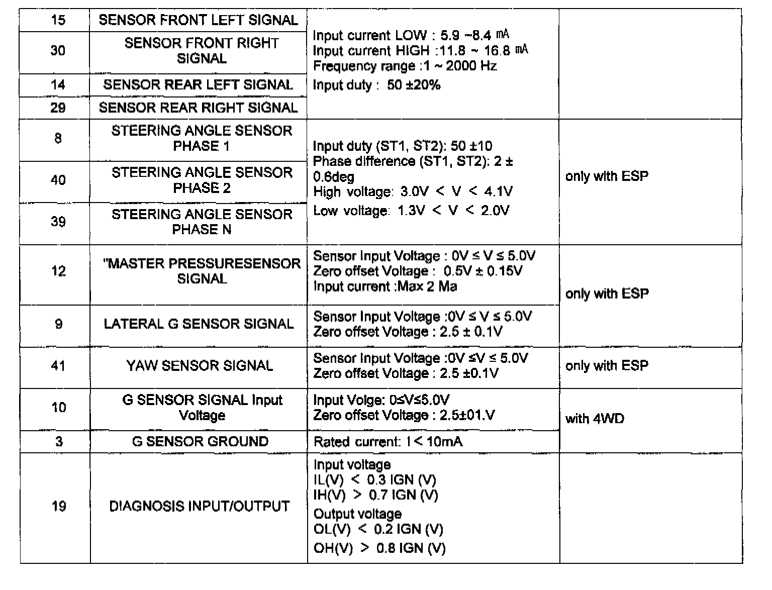 ESP Control Module Pinout Values